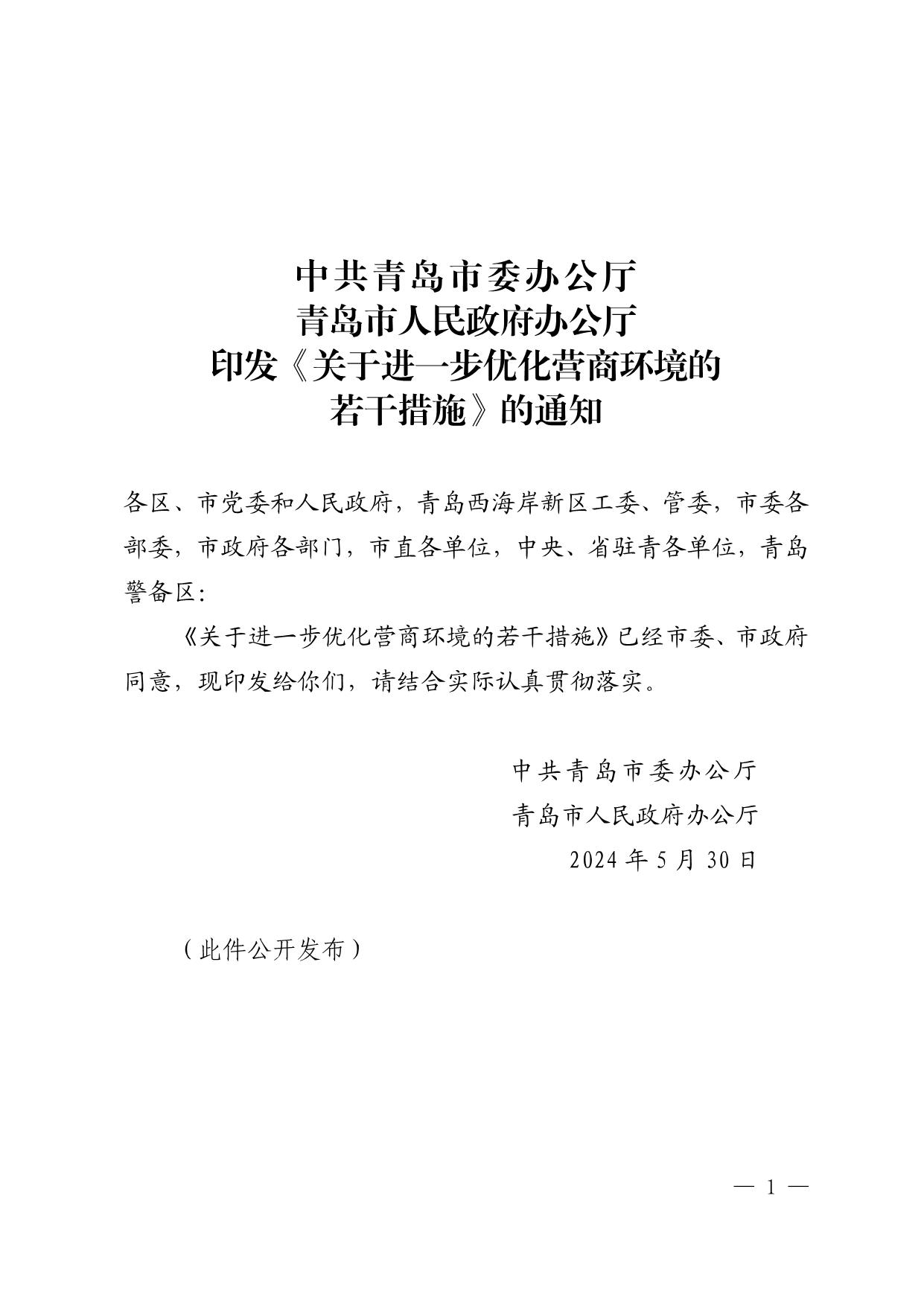 轉(zhuǎn)發(fā) 中共青島市委辦公廳 青島市人民政府辦公廳 印發(fā)《關(guān)于進(jìn)一步優(yōu)化營(yíng)商環(huán)境的 若干措施》的通知